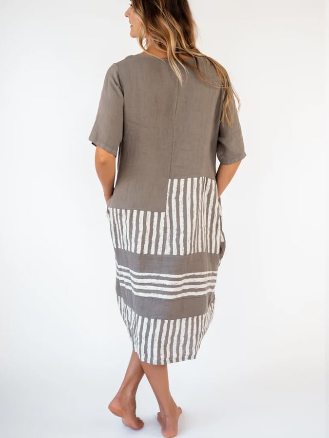 • Women's Solid Color Cotton Linen Dress