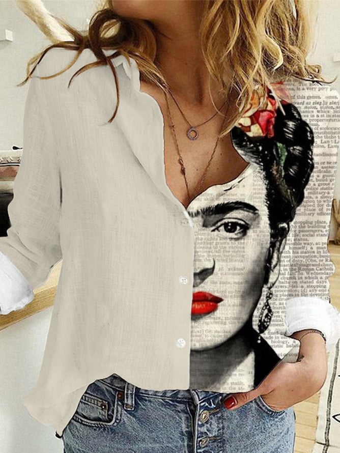 Women's Frida Khalo Newspaper Print Cotton Linen Shirt