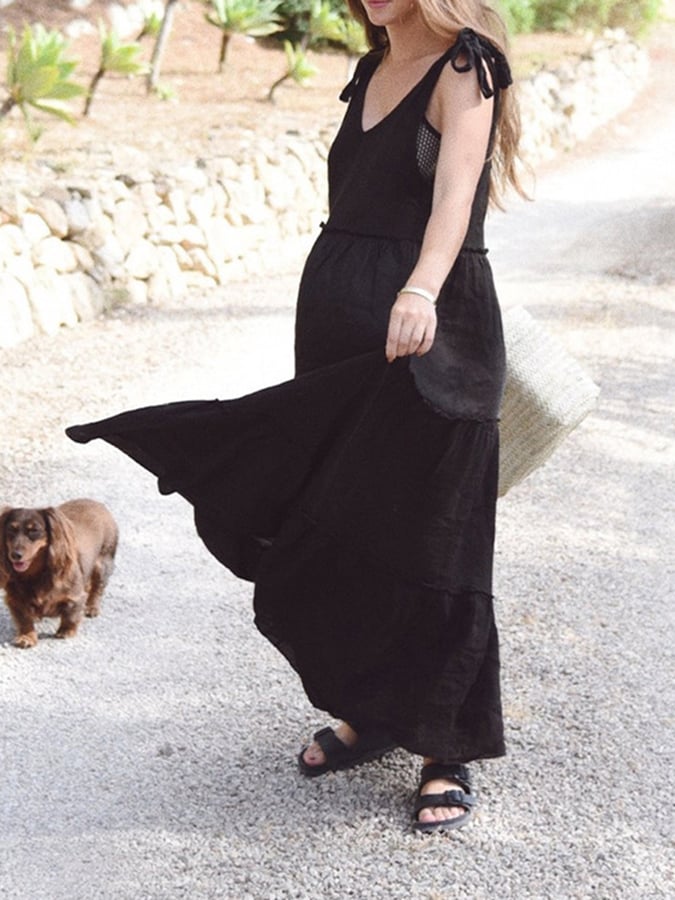 Women's Casual Solid Color Silhouette Lace-Up Skirt Cotton Strappy Dress